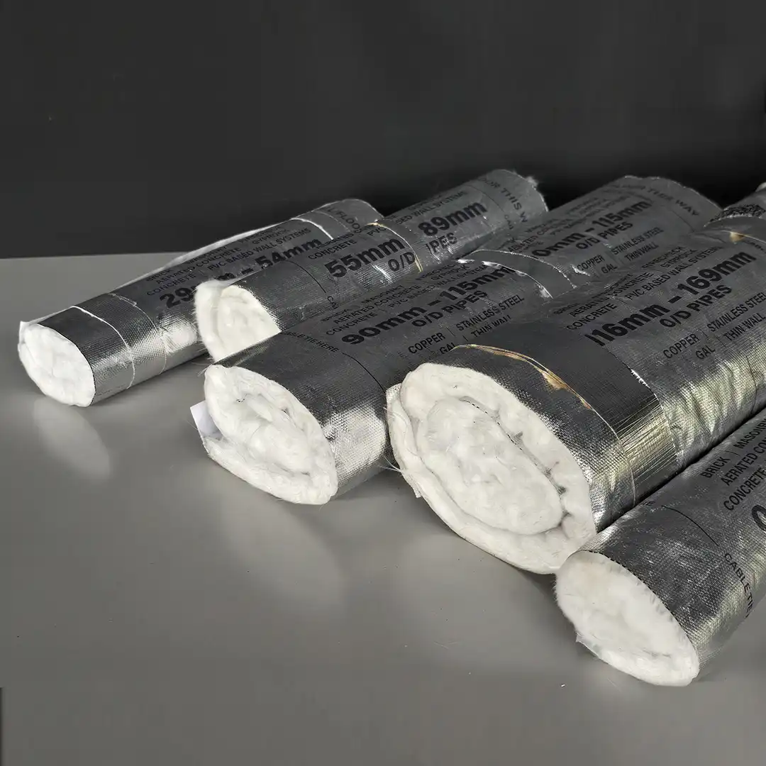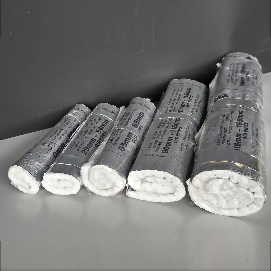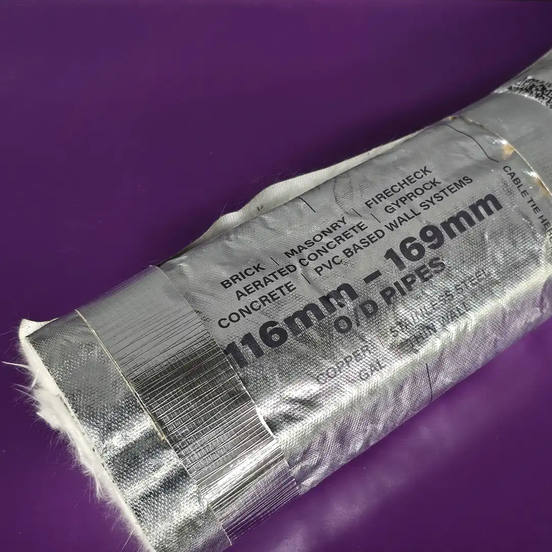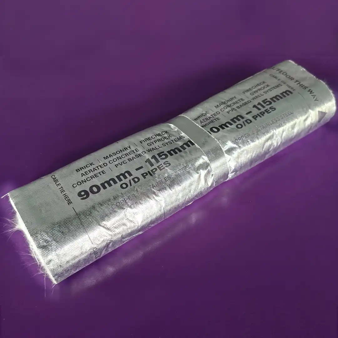 Patented pre cut and rolled sections differing in lengths and widths depending on the size O/D of the service, they are used to insulate pipes from the spread of fire from one side of a wall or floor to another when a fire occurs